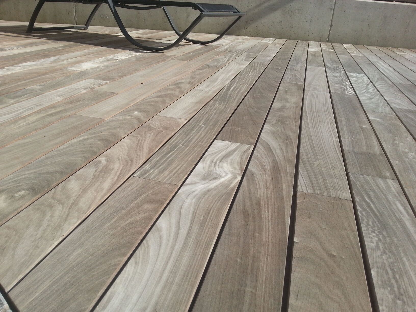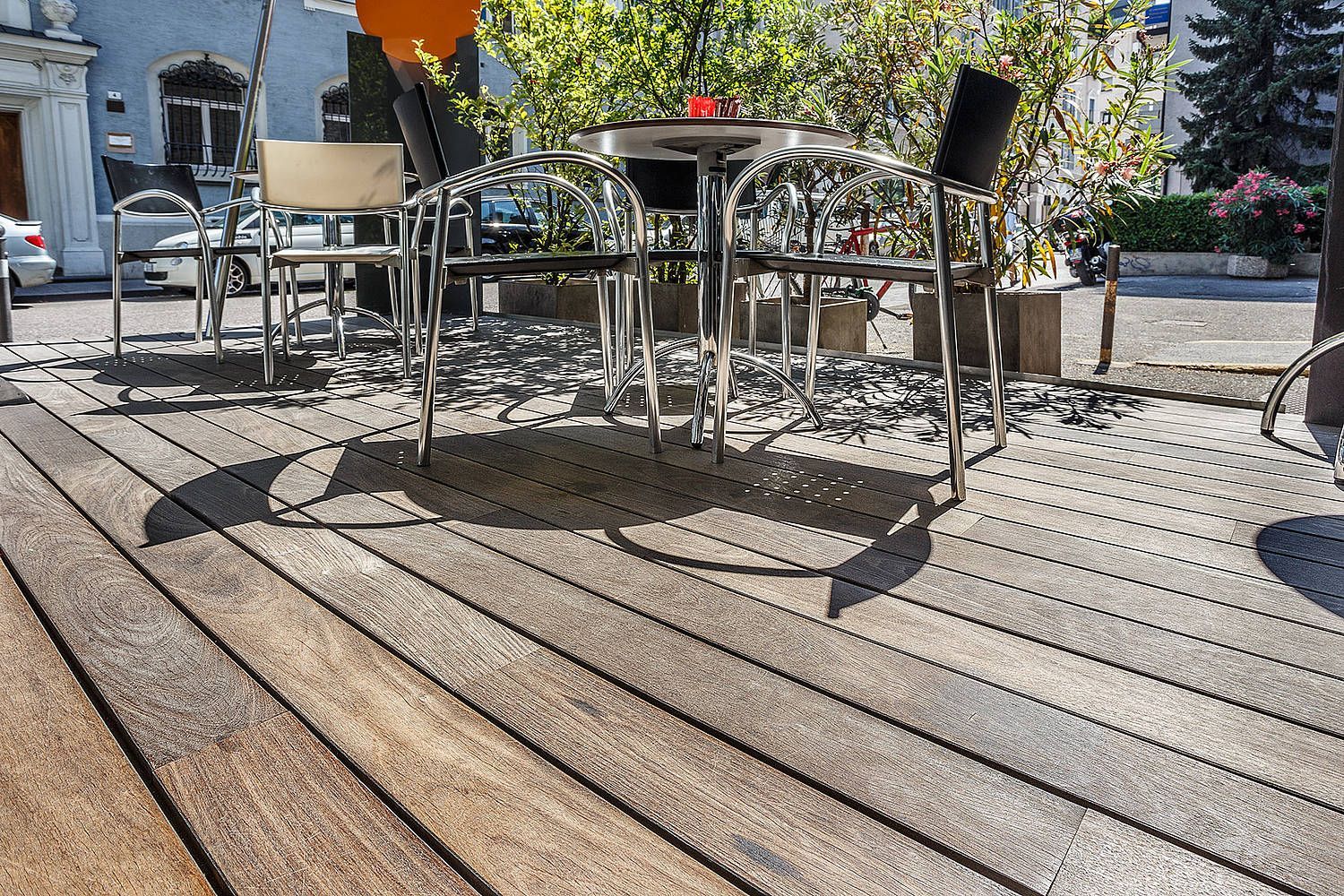In Verbindung mit einer Unterkonstruktion aus Aluminium ist dieses Terrassensystem aus Echtholz die Garantie für ein hochqualitatives und langlebiges Produkt. Auch bei starker Sonneneinstrahlung bleiben Echtholzdielen angenehm temperaturneutral. Einem Barfuß-Sommer auf der eigenen Terrasse steht nichts im Wege. Ein Genuss für die Augen und für die Füße!